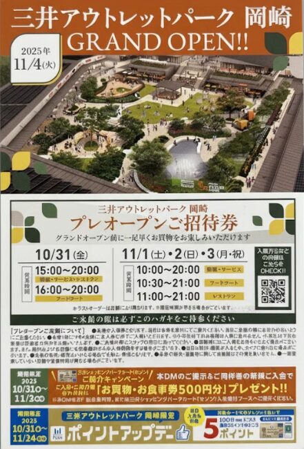 岡崎の三井アウトレットのオープン日は2025年11月4日に決定しました。